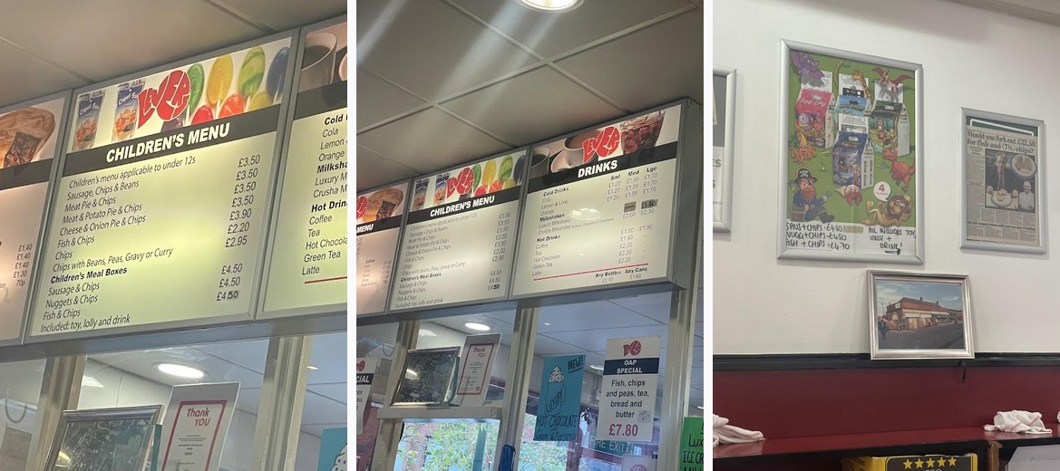 Ordered a small fish and chips for a very reasonable £5.30 I say small fish but in my opinion it was large! Will visit again when next in Oldham