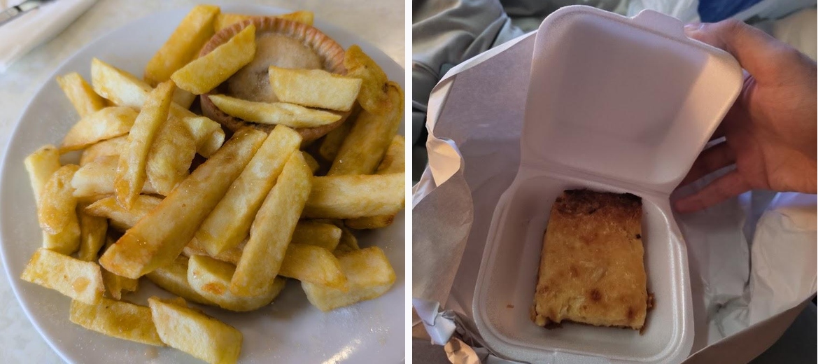 Food was amazing. Best chippy in town and will always come back here. Parking and paid parking are available nearby. Close to bus stop and tram stop. Heart of town centre and lovely when you want a quick chippy. Prices are decent and fresh chips as well. I highly recommend who wants a chippy in town centre.